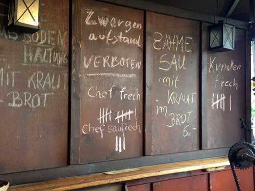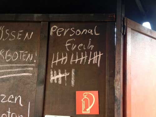 Da kann man doch wirklich nur noch den Kopf schütteln. Unsere Gäste wussten überhaupt nicht mehr, was sie bestellen konnten... alles war mit Regeln und Strichlisten bemalt. Akribisch wurde "Tafel" geführt.