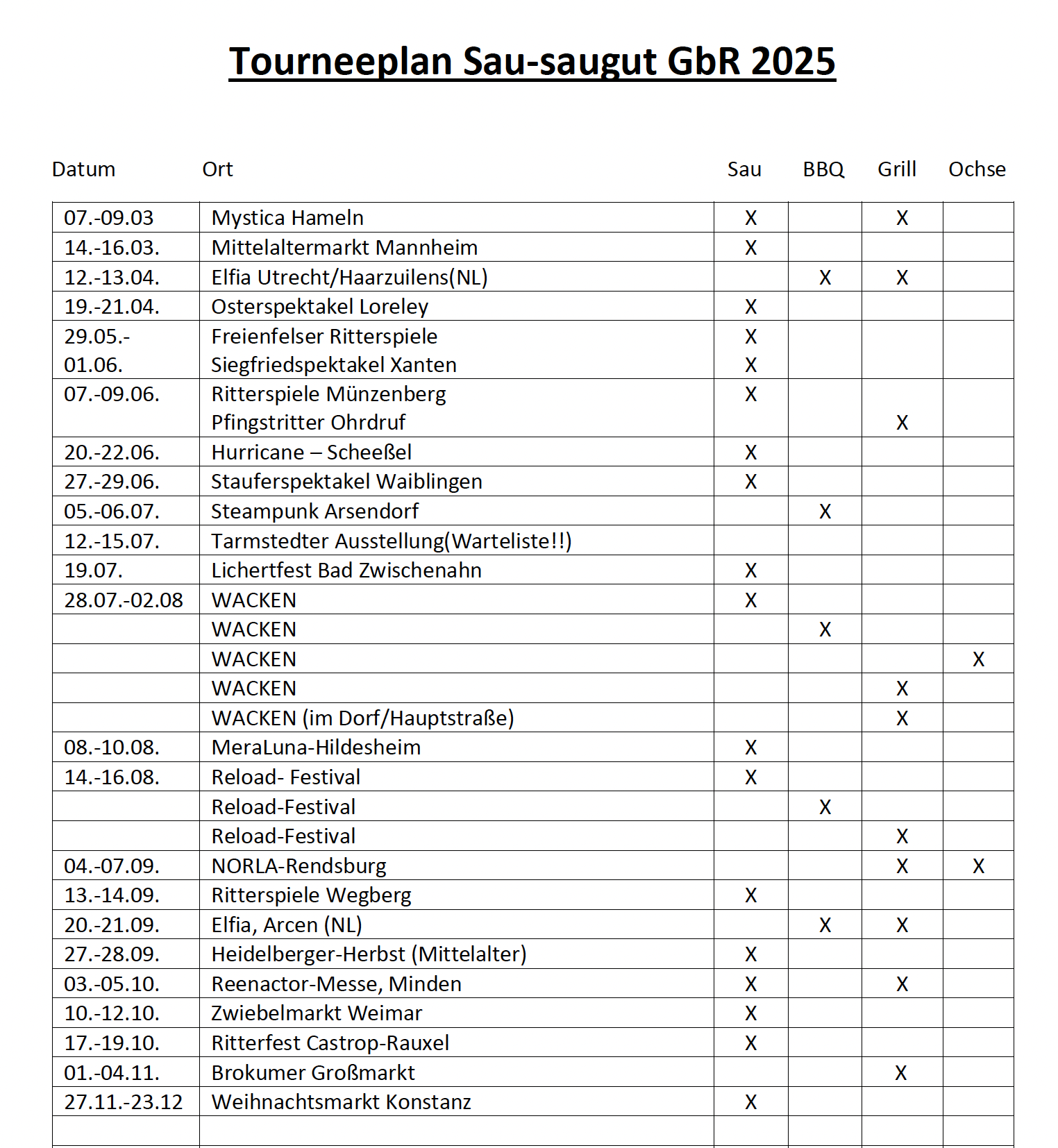 Mit "Sau" ist nach wie vor der Verkaufsstand mit unserer "Sau vom Spieß", die sich über offenen Buchenholzfeuer munter dreht, gemeint.